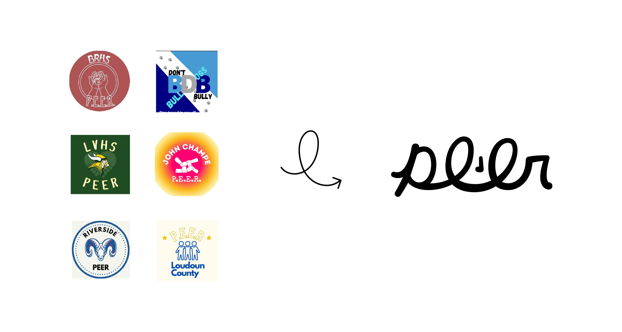 I was invited by a friend who teaches at one of Loudoun County’s high schools to design the new PEER brand. Their program was struggling with engagement among students who need help, but didn’t feel comfortable approaching PEER